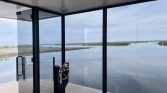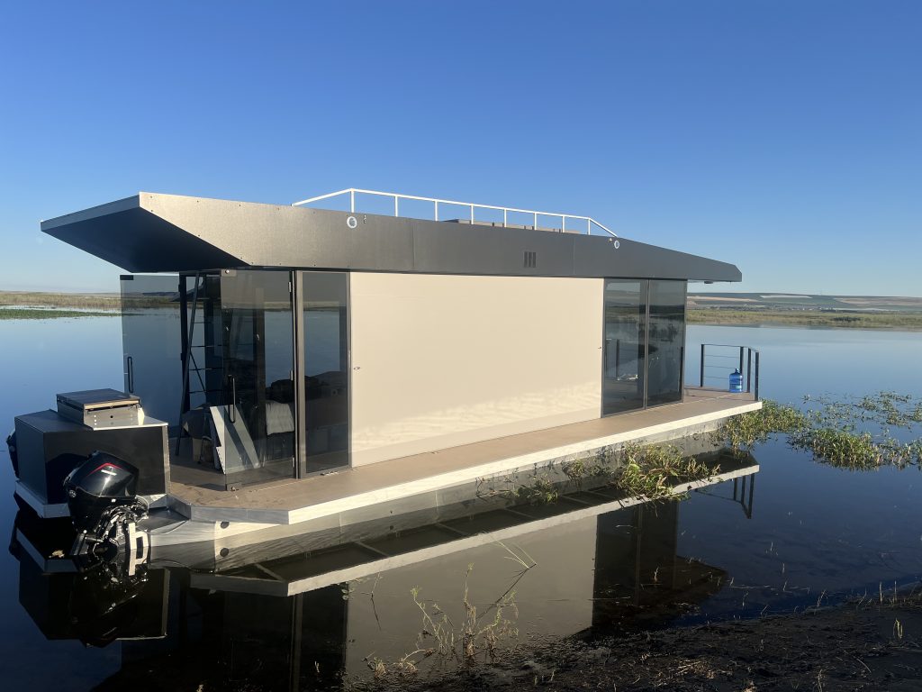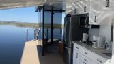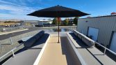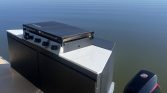 Both of the gray side walls you see in the pictures tilt open via electric lead actuators to become large awnings. This creates an open air atmosphere that makes it very nice and is like no other. So much fun and really makes it nice out on the water. 25 mph winds are no problem for these awesome awnings. They also have shade sails that can be added on for even more shade.