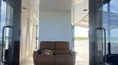 The love seat comes with the boat and is a dual power recliner. A queen size air bed works nicely for guests inside the cabin next to the love seat.