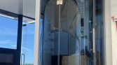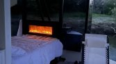 It has a nice stereo system, full size fridge, Air Condidtioning for night time sleep, Heat, 250 gallons of fresh water, gray water storage. No black water as it uses a compost tiolet! Very easy to use and clean. It has a full size glass steam shower with endless hot water (propane) . It has a propane range, Full size Mircrowave and a flat top Pit Boss propane Grill on the back.