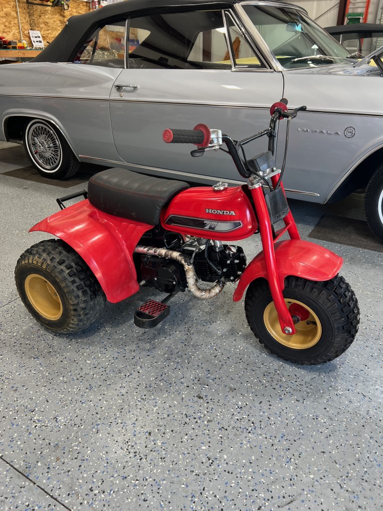 1983 Honda ATC 70 with Lifen 125 engine, big bar kit, wide pegs, aluminum grab bar, custom seat, big bar kit. Fresh service runs great!