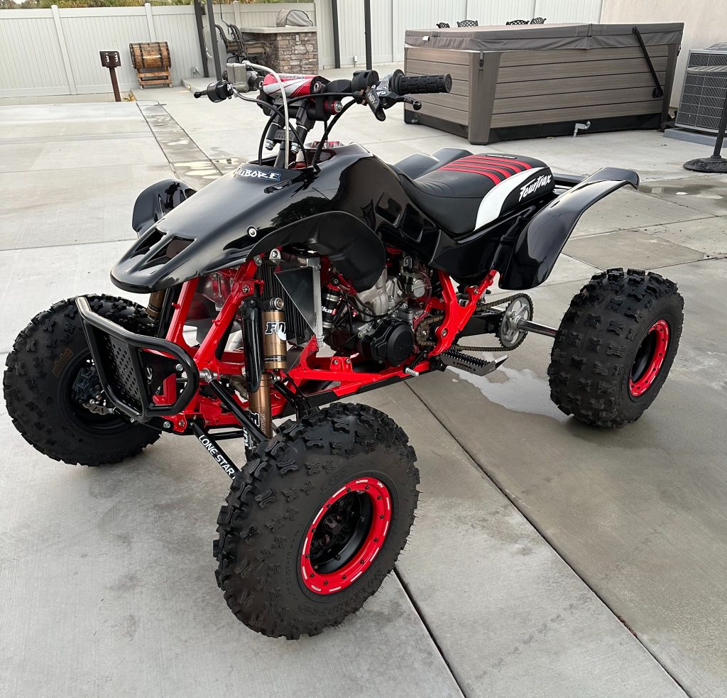 1986 Honda TRX250R full custom build. ear 350 head, led pipe and silencer, led intake, loan star long travel kit with fox float shocks, elk rear shock, rtc louvers and shrouds, ballistic skid plate, ac racing crash and grab bars, roll racing steering stem and bar clamp, loan star racing stem clamp, flex bars, avs levers, fullbore plastics, fourwerx seat cover and red carbon tank cover, dominator 2 axel, rocket calipers and sprocket, ear billet kicker and shifter, billet foot brake, its roll pegs, 88 swing arm, dwt beadlock wheels, hole shot tires, engine only has brake in hours fresh build, you won’t find a cleaner trx250r.