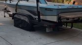 Boat trailer has nice wheels and good tread on tires. Tires always kept covered. Last season i put new wood and carpet, and re did the wood behind the fenders incase of blow out. Trailer also has trailer brakes.. i have new lights for it as well.