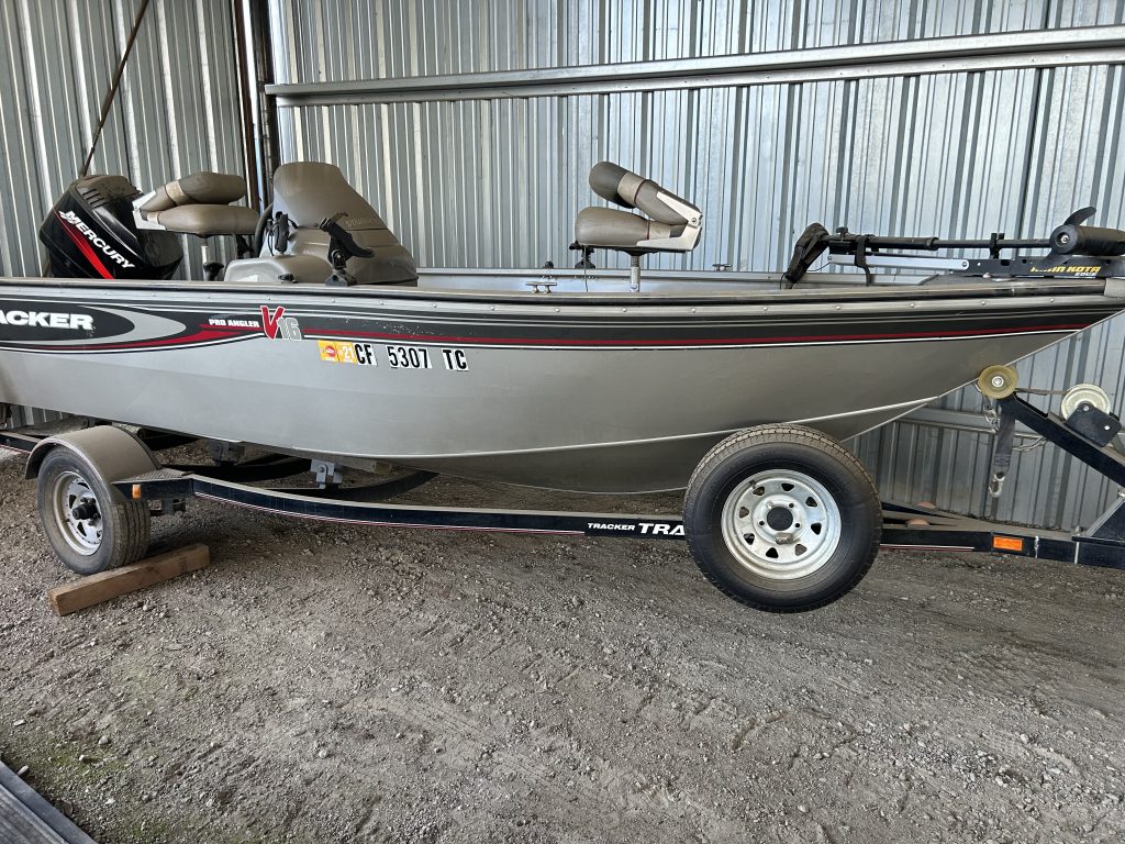 2003 Bass Tracker Pro V16, has 75 hp 2 stroke motor. Been sitting awhile, in our shop covered. I’m sure it’s ready for batteries, new spark plugs wouldn’t hurt. It does run well, just been awhile since she’s been out. Live well, minn kota trolling motor, rod storage areas, been a real nice boat for us.