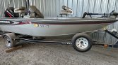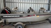 …2003 Bass Tracker Pro V16, has 75 hp 2 stroke motor. Been sitting awhile, in our shop covered. I’m sure it’s ready for batteries, new spark plugs wouldn’t hurt. It does run well, just been awhile since she’s been out. Live well, minn kota trolling motor, rod storage areas, been a real nice boat for us.
