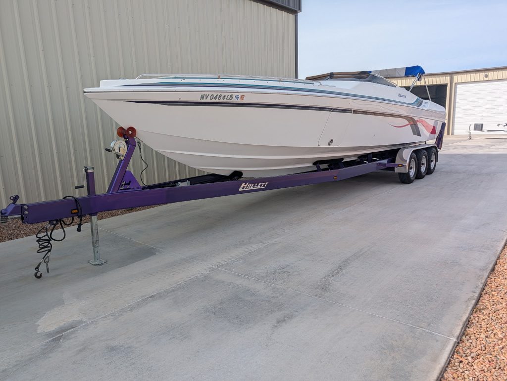 2003 Hallett 340 Mid Cabin with side door. Very hard to find! Perfect project, add new motors and drives or convert to outboards. Includes, k-planes and hydraulic steering helm and lines to the Transom.