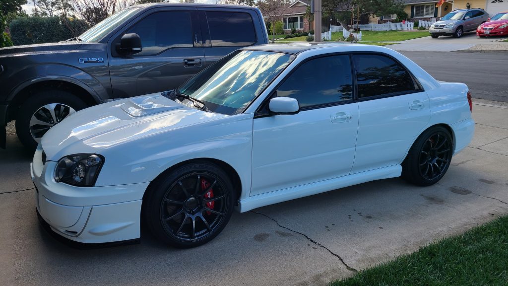 I have owned this since 2006 Subaru WRX as a daily driver then my second car. I have put so much work into my Subie, but the time has come to find it a new home. I installed a 2006 STi drivetrain (6MT transmission, axle, differential, half shafts, knuckles, A-arms, Brembo brakes and steering rack). 2.0L block and internals with a Perrin rotated mount turbo (Garrett GT3071R) and Perrin equal length headers. AEM EMS with MAP based tunes for 91 and E85. It’s fun to drive and pulls hard. The car is riding on 18×9 Rota G-force wheels custom powdercoated and Fortune Auto 500 coilovers. Morimoto HID headlights, STi steering wheel, STi gauge cluster and center mounted gauges. Too many mods to list. I love this car, but I have decided to sell it due to lack of time with 3 kids now. 76,200 miles.