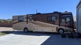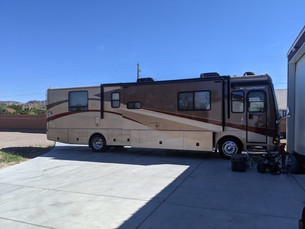 2006 Fleetwood Discovery 39S. Cat 330 hp diesel. Triple slide. Huge living room, double sofa and dinette. 63k miles, newer tires on aluminum wheels. tons of storage. Auto leveling, electric awning, Front/Rear caps repainted last year, roof resealed, no leaks. very clean inside and out. new smart tv in living room. in motion satellite, minor damage on bottom of passenger side cabinets from dragging in the desert. Cant see unless cabinets are open . Tons of storage. Everything works as it should.
