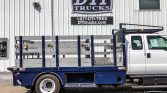 5.9L Cummins Turbo Diesel Engine, 260 Horsepower, 5 Speed Automatic Transmission, 105,542 Miles, 20,040 GVWR (No CDL Required), 8,160lb Front Axle, 15,880lb Rear Axle, 203″ Wheelbase, 106″ Cab to Axle, Air Suspension, 245/70R19.5 Tires, Steel Wheels, Air Brakes, No DEF No DPF Not California Compliant, 12′ Long x 96″ Wide x 42″ Tall Stake Panels, MBB Interlift 3,300lb Liftgate, 48″ Long x 80″ Wide Liftgate, Hide Away 5th Wheel Hitch, 3″ Receiver Hitch, Electric Trailer Brake Controller, 2 Underbody Storage Boxes, A/C, Tilt Steering Wheel, Cruise Control, AM/FM Radio, Power Windows, Manual Mirrors, Power Locks, Air Ride Driver Seat, Vinyl Seating for 6.