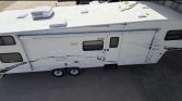 …2007 5th wheel Keystone Cougar 314EFS. 35’4” Dry Weight 8350 Lbs. Sleeps 10, Queen bed in the master bedroom, pullout sofa bed, bunk room in the rear, 14 ply tires, plenty of storage with rear garage. Rear slide out bumper. Fresh 50, Grey 56, Black 30. Roof freshly sealed with all vents replaced on 3/26 New awning replaced 4/26. Bearings repacked 7/25, 2nd owner and besides the decals faded everything else is well taken care of.
