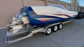 2007 Eliminator 36 Daytona Coupe. Brilliant design combined with excellent function. Full wrap windshield provides wind protection while the temps are hot or cold (optional roof piece included). Approx 370 hours on twin reliable Ilmor 625 power mated to new Max Machine upgraded/  Teague Platinum drives, Imco stand off boxes and lowers, Mercury labbed 34p props and Quad-Ram full hydraulic steering. Newer cockpit interior and Air Conditioning makes a comfortable boating experience all around. Huge cabin space…