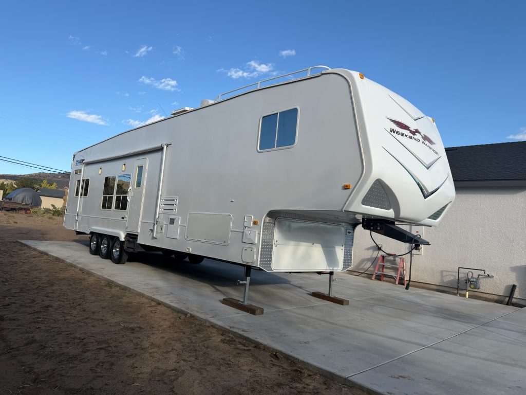 Super clean completely remodeled toy hauler. Interior completed in 2021. Could be used as toyhauler or tiny house. Many new upgrades including new refrigerator (4k), new upgraded dual motor bulldog landing gear(2500), new carburetor on generator, freshly coated and sealed roof, new high flow water pump, brand new batteries, big stereo, new 5th wheel pin box. Trailer was just detailed 10/2025. There's a few details left to do but very minor. Will fit 4…