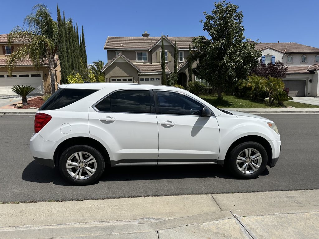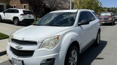 White 2012 Chevy Equinox LS. 2.4 Liter 4 cylinder. It has minor cosmetic issues on the exterior and clean interior. Also has Apple CarPlay.