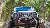 Poison Spyder rear bumper with LED lights and D-ring tabs and 2″ hitch receiver