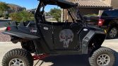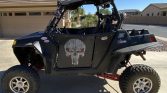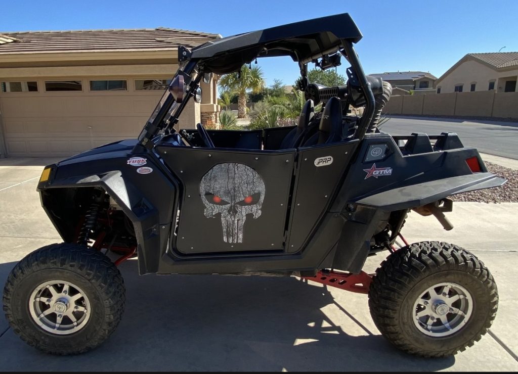 Blue tooth stereo – new rear tires – metal doors – new heavy duty springs and A arms – recently serviced – lighted whip antenna – lights on roof, front & rear – partical separator – horn – side mirrors – 6 pt harness.