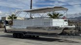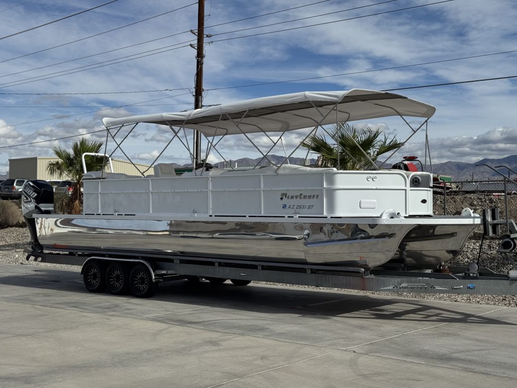 •32’ in length 10’ wide, full stainless Bimini, custom snap in carpet over grass weave flooring, JL audio system by Ron’s, fully polished pontoons, mercury vessel view, fly by wire shift/throttle controls, onboard battery charger,…