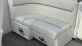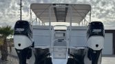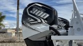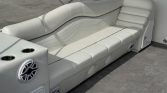 •32’ in length 10’ wide, full stainless Bimini, custom snap in carpet over grass weave flooring, JL audio system by Ron’s, fully polished pontoons, mercury vessel view, fly by wire shift/throttle controls, onboard battery charger, fresh batteries, quick connect fender attachment, led lighting, Haynies designs custom painted cowlings.