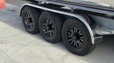 •Galvanized trailer with triple torsion axles, disc brakes on all three axles, electric tongue jack, new spare caliper rotor and spindle, new tires/wheels with matching spare wheel/tire, led lights, caliber wrapped bunks from adrenaline trailers, electric brakes, front ladder.