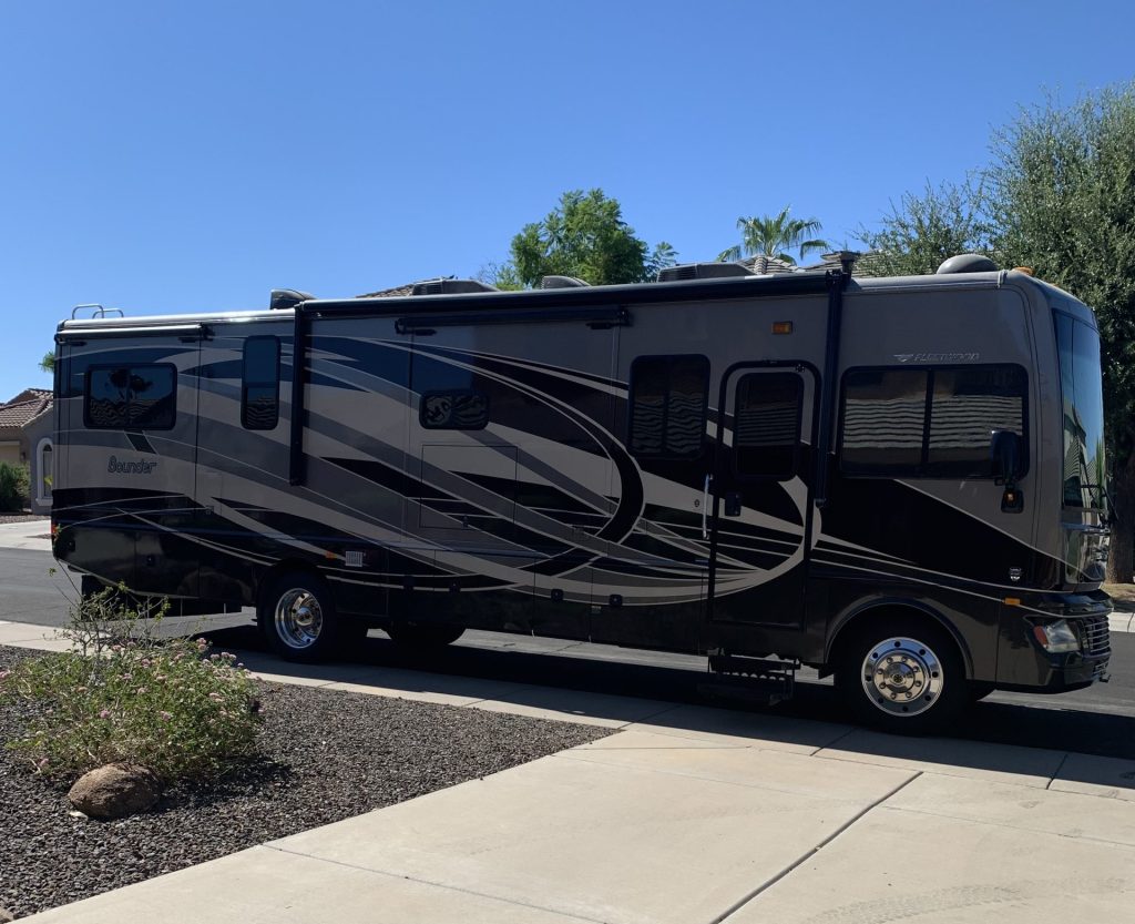 2015 Fleetwood Bounder 34T. 3 slides, all paint, ceramic coated in 2015 and 2018. Stored in doors. 6.8 liter Triton V10, 39,880 miles, runs extremely well, 22.5” Alcoa Rims, all tires are 3 years old, 4 6v batteries, also 3 years old.