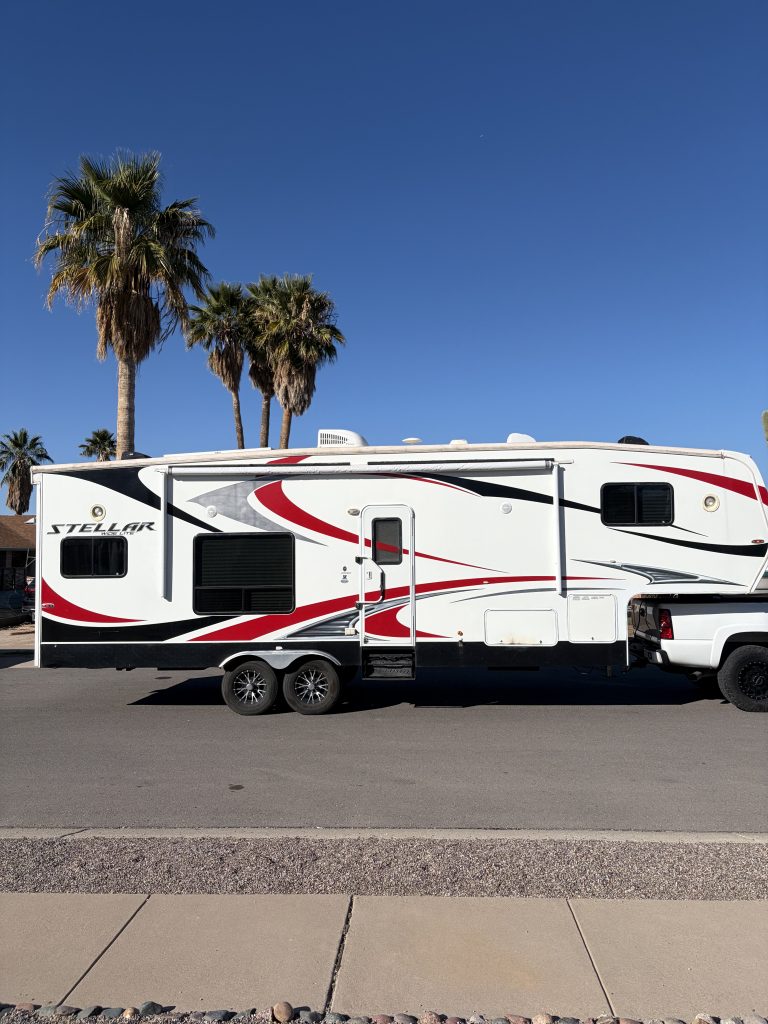 2015 Stellar Wide Light 28dbg. 31’6” long. 12’9”to first cabinet, 97”wide and 76” between fenders 77” tall to first bed. Trailer is in excellent condition everything works as it should. Has solar and inverter. Brand new awning. Tires are all good. Price is obo let me know if you have any questions.
