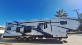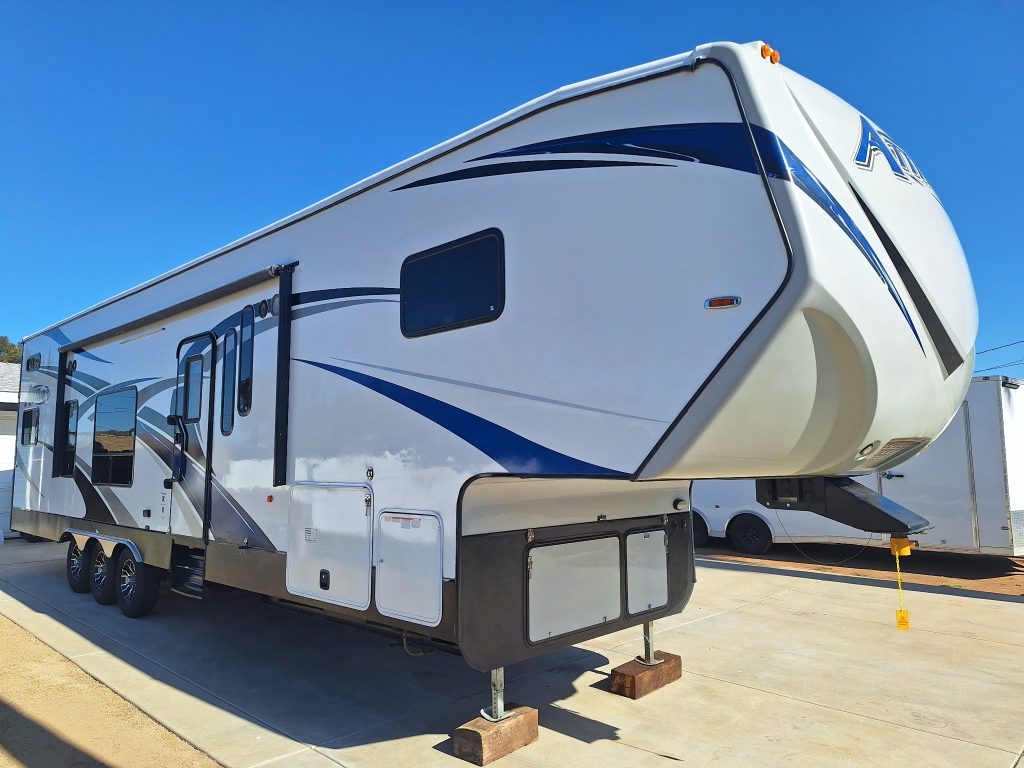 2016 Attitude 38CRSG 5th wheel Toyhauler. Two Slide outs, bedroom and living room. ONAN 5500 generator with only 827 hours on it. Sleeps 8 with queen in master bedroom, double retractable queen bunks in the rear and sofa that folds out to bed. Replaced 2 individual swivel rocking chairs with new. 2 A/C units, both work great. Large pass through storage area / front holds, power awning. Not perfect, normal wear and tear, but very well maintained for a 10 year old toyhauler. Crack in one of the bedroom closet doors. Small gouge on inside of rear garage door ramp from loading sandcar. Does not affect door strength / operation at all. I have pictures of minor flaws mentioned above and more interior / exterior pictures if wanted. Been a reliable, great Toyhauler. No issues. Only selling due to divorce.