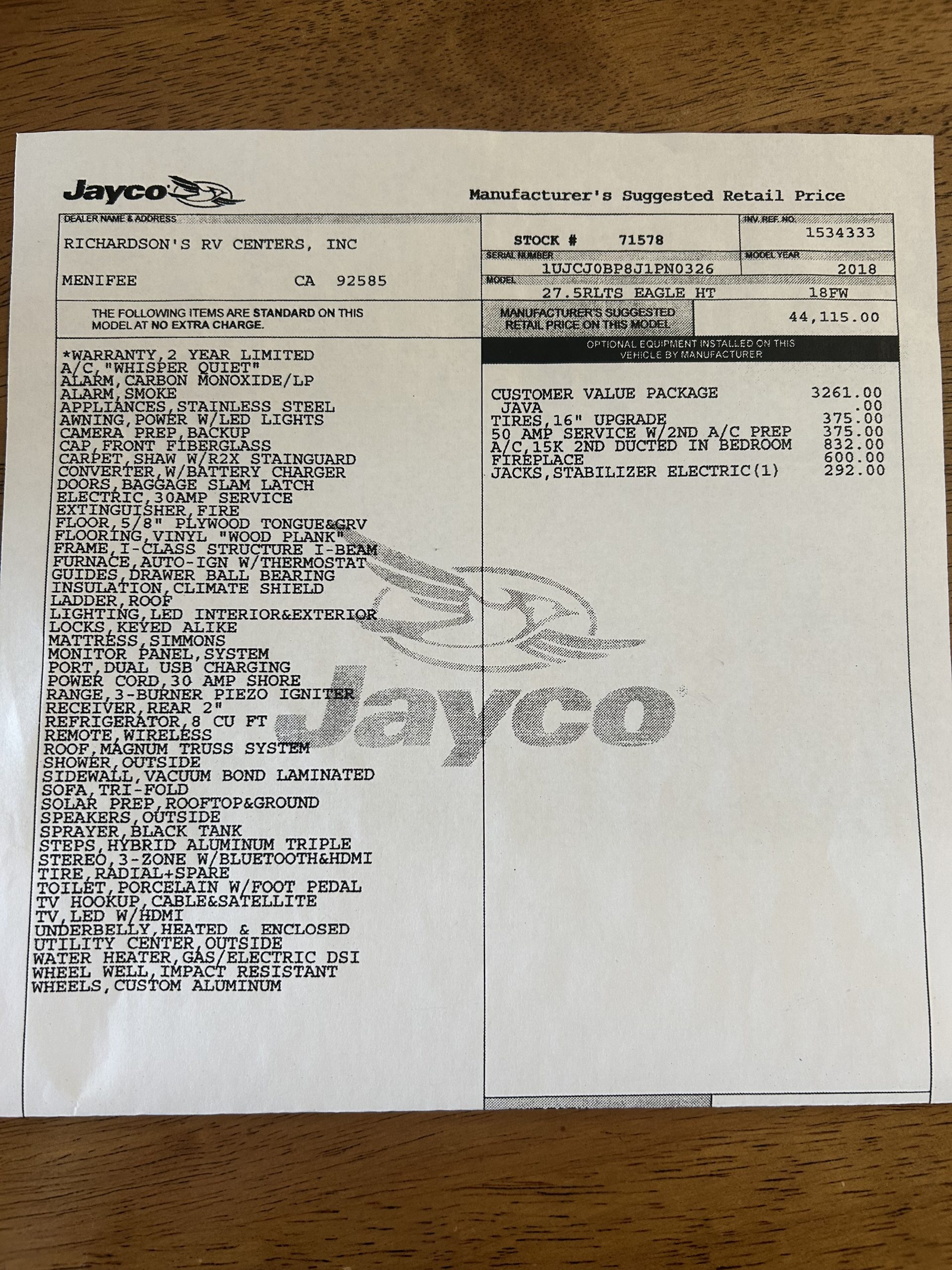 2018 Jayco HT Eagle RLTS 27.5 Fifth Wheel