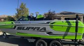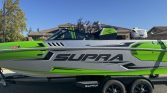 This Supra produces an excellent surf wave with the onboard ballast system and computer-assisted setup, making it ideal for wake surfing or wakeboarding.