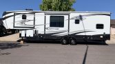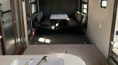 This model is originally a 2 bathroom trailer. We deleted the 2nd bathroom that was near the garage for more usable space for hauling and for open concept while in living space. This trailer has a huge feel inside and very homey.