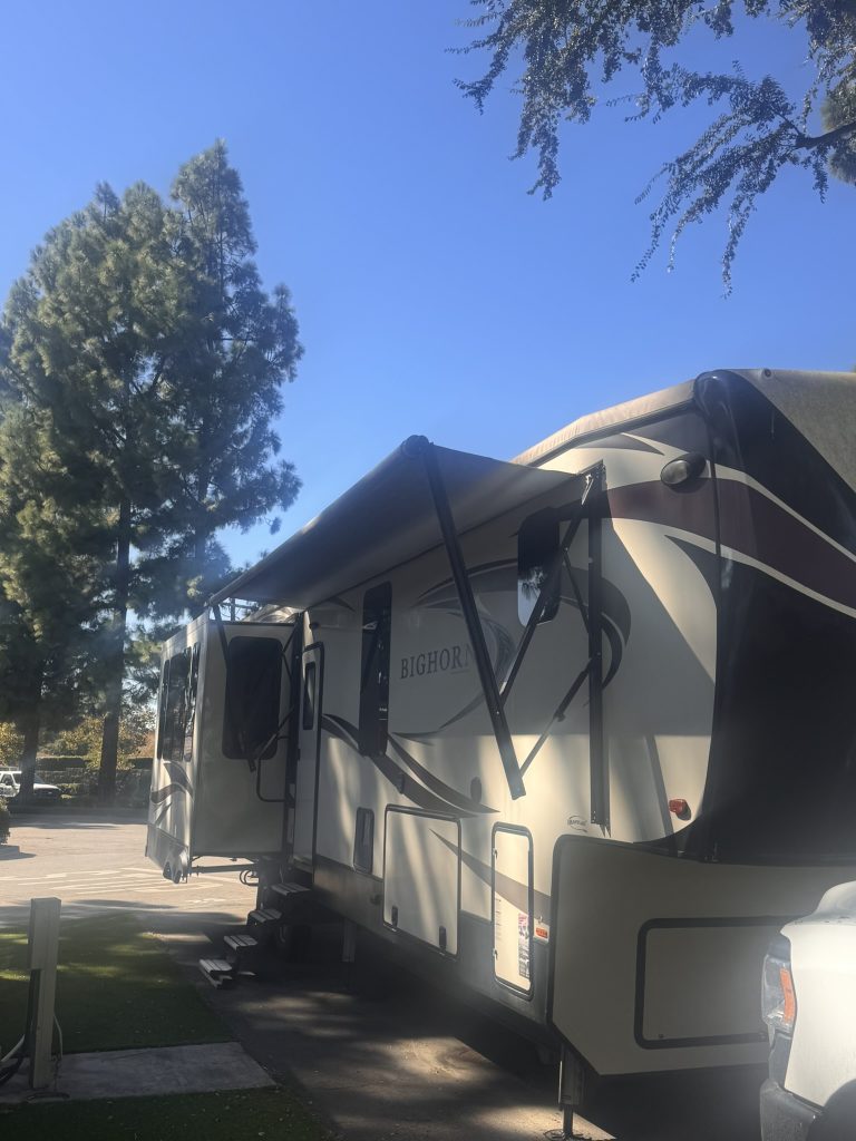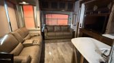 Experience luxury RV comfort at its finest! This 5th wheel trailer was designed for comfort during extended use or full-time living. It features multiple slide outs, a spacious floor plan, large kitchen, 18 cubic foot refrigerator, two bathrooms and king-sized mater suite. What more could you want?