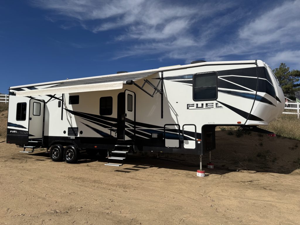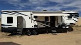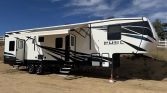 2019 Heartland Fuel 335 39’ Toyhauler, 13’ garage, 2000 watt inverter, 4 six volt battery with solor panel. Run everything off inverter no need to turn on gen except air condition. Runs c pab machine all night without gen. On board air behind storage wall so it takes no room from the storage area. On board air has been great for filling tires on toys or even those times when you may need to air down. As you…