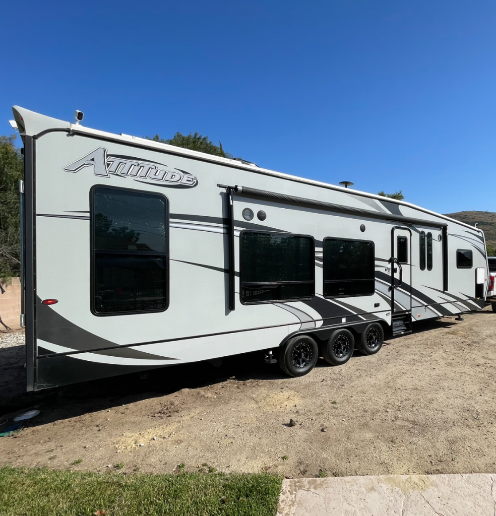 2020 Attitude Toy Hauler 3016GS, great working condition, upgraded front 15k BTU AC unit, has 30K rated with full auto leveling hydraulic jacks, 2000W inverter with a solar and a 600AH LifePo4 batteries. trailer has 4 security cameras with solar and reverse camera, has onan 5500W on board generator with a