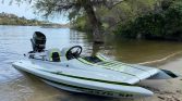 1989 Azirin 13′ Eliminator look alike boat fully updated with 45hp motor with trim. Alcantara interior, stereo,new shifter,steering wheel, onboard battery charger,hidden storage in seats.