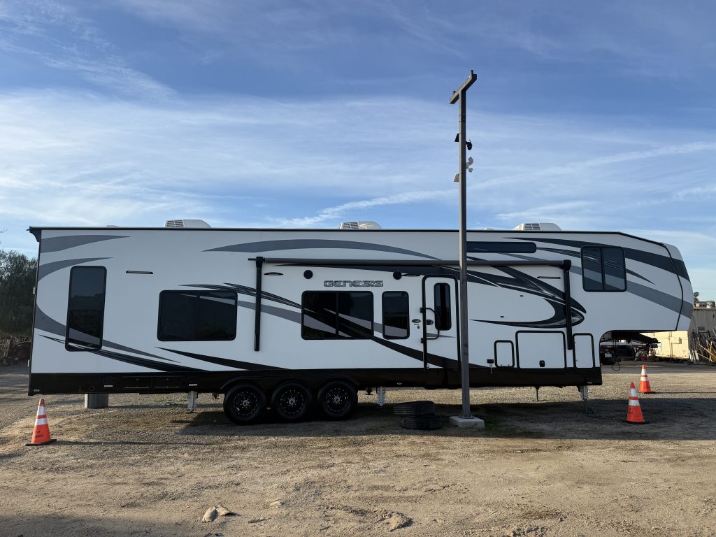 Selling our 2020 44' Genesis CR40 toy hauler. It has many upgrades including Hydraulic disc breaks, 3-200ah 12v batteries, blue ray players & sound bars on 2 TV's (50"&42"), big stereo outside w/ 2 subs, solar w/ 2000w & 700w inverters. This trailer is set up for anything in between quick weekend and those week long trips w/ 80 gallons of fuel, 160 gallons of fresh water, 2 grey tanks, 2 ceiling fans, 3 AC's, ice…