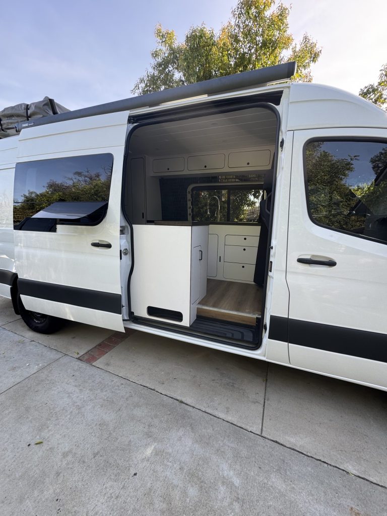 A travelers dream, great for family and pups. This 2020 Mercedes Sprinter Van is set up for family and friends with enough room for six (sleeping and traveling). Bench seats have seat belts and transform into a table during the day. By night it can sleep two. Pantry with tons of storage for food and plenlty of cabniets for storage. Vinyl flooring, butchers block countertops, stainless steel sink with upgraded faucet. The main bed is perfect for taller people, it extends off the backrest of bench seats for a larger sleeping arangement. Thule tepui tent above the van sleeps two with a built in mattress and ladder for easy access. Large Thule Omnistor awning for great shade while having lunch or dinner. Top of the line Victron Energy off grid components. No need to wait for a new van build this van is ready to go with only 2K miles!