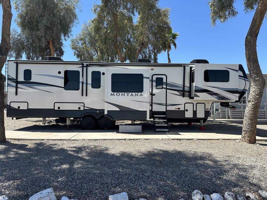 very well kept up, like brand new. Has brand new king bed in plastic. Beautiful living space with dual recliner chairs and two couches that pull out to queen beds. Fire place, stereo that plays throughout the trailer and outside. Tons of storage. Comes with starlink satellite but not subscription. Includes 30…