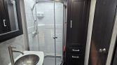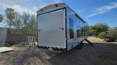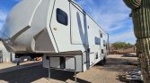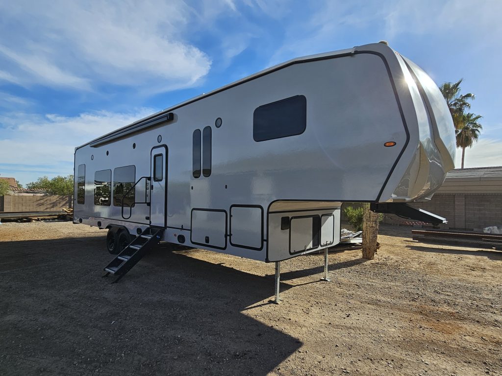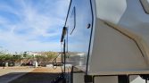 800w of solar on the roof controlled with victron charge controller, 2 dakota lithium 200ah batteries (400ah total). 2000w inverter, Alpine exterior stereo system with 2-12″ downfiring subs underneath. 3 smart tvs, new JC refrigeration 12v fullsize fridge (not propane) got rid of the problematic norcold. Best upgrade I’ve done, cools down super fast, and we use almost no propane anymore. Armless awning with auto retract if it gets windy. Replaced the front jacks last summer with individually controlled ones for easier leveling. Fuel station for your toys.