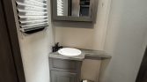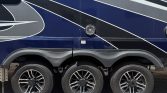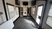Trailer features full body paint, ceramic coated exterior, disc brakes on all 3 axles, 15’ garage, residential package with an Ipad type control panel to monitor and control all the awesome features which is also available with an app on your phone, 3 AC units, upgraded Rockford Fosgate speakers w.subs (interior and exterior), onboard generator, solar , crazy lighting everywhere and just so much more. (4) 6 volt batteries