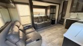 • Exterior ready for adventures: fiberglass front cap, power ramp/door, heavy duty tie-downs in the garage area, ample storage, outdoor kitchen/patio potential
