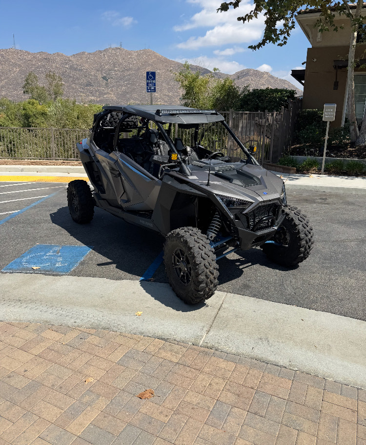 2021 Polaris Pro XP, 4 seater turbo.Metallic,rugged radio with custom dash mounting plate,with intercom,4 outlets 0ne at each seat. S&B air cleaner system with S&B filter. Two rechargeable dome lite. Dynamic suspensionsystem.The car went to UV And complete suspension gone threw.shock therapy torsion bar linkage , travel stop straps.rigid roof mount made for Polaris ,rigid rear tail light for Polaris , mfg spare tire rack with matching wheel and tire,tool box and ice chest bymfg.Baja squadron lite pods on frt roll cage post with Amber lens , clear lens in tool box. Tire jack mounted under spare tire. Tools tow straps tire patch kit , extra belt.mfg rear view mirro. Mfg side mirrors. Frt door storage bags, and storage bag between rear seat