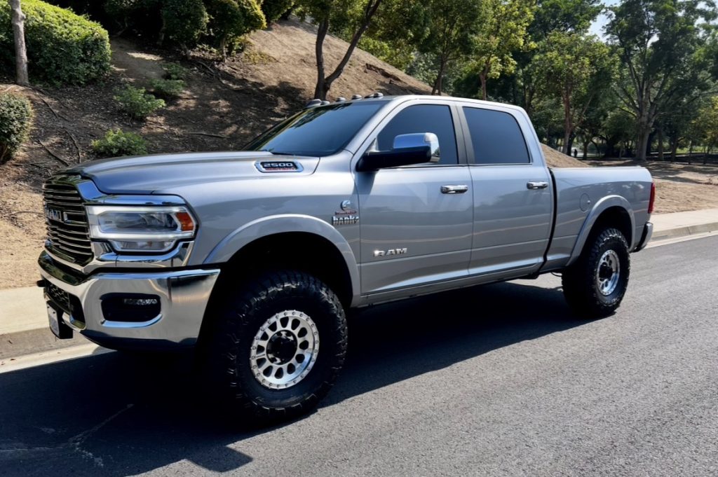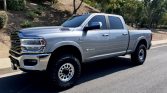 2021 Ram 2500 Cummins Laramie, black leather, color is billet silver.
