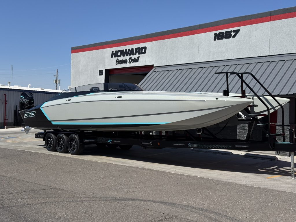 2023 DCB M37R I am the second owner of this boat it has always been taken care of by dcb since new. Carbon Kevlar lay up twin 450r motors with warranty’s just extended through April of 2027, Wilson lowers with clever props. Full carpet inside boat with alcantarra and cool touch interior. Boat has been corrected and ceramic coated by Howard custom detail in lake Havasu. Big JL stereo, underwater lights and all sorts of lights throughout boat that are color changing. This is the only m37r with front seating almost like a jump seat, it has a hard top cover over seats that makes it look like a closed bow or you can take it off and have a open bow. 2022 adrenaline trailer that comes with boat with brand new tires. Boat will have 100 hour service done and be detailed for new buyer. Not looking for trades.