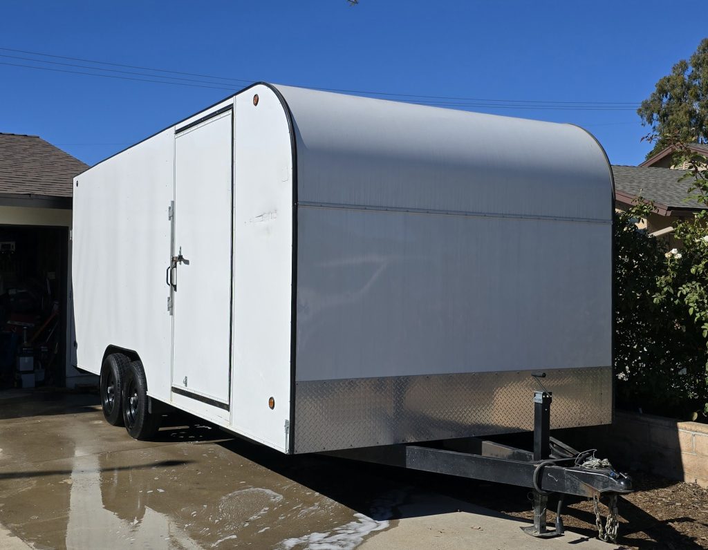This is a 2023 UPGRADED Fractal trailer, 20′ L X 8.5′ W X 7′ T. Upgrades include a heavy duty front trailer jack, and heavy duty axles AND SOLAR power for boondocking! It was purchased brand new in 2022, pink slip in hand. It can easily hold a sand car or buggy, and still have room for a few more toys. We have also hauled a full size Jeep Grand Cherokee with a 3″ lift with no problems. Original owner.