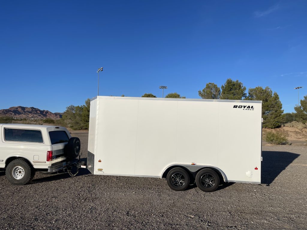 2025 Royal Cargo 18’ Enclosed Trailer, like new, used a few times, premium upgrades, led lights, finished interior walls, rubber nonslip flooring, 3500 lb axles,2-5/16” ball, mounted spare tire inside. Slight hail damage on roof, other then that trailer is flawless and ready to go. Title in hand.  No trades.
