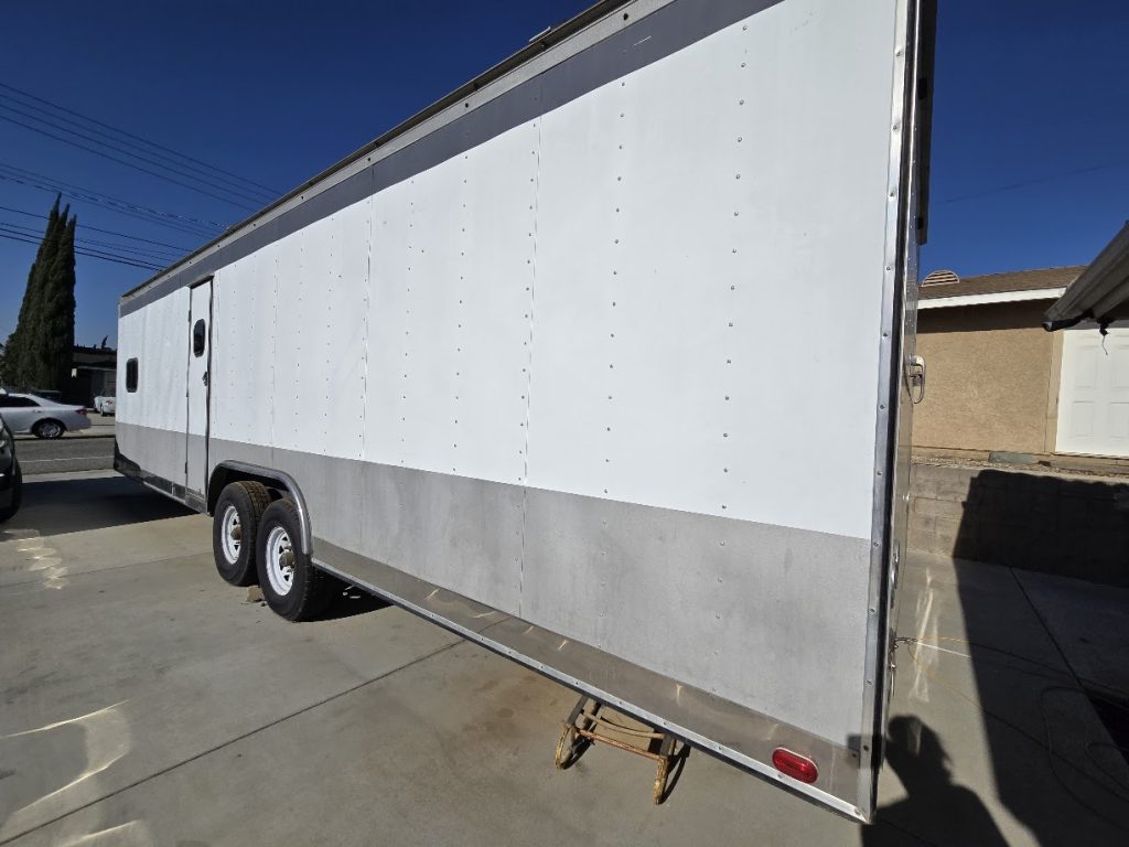 1994 30′ Competitive Race Trailer w/Strategy Room *Stainless diamond plate siding *Seperate front room with own locking door (used as kitchenette area) *Unserviced generator – stored in own space with separate entry doors at front of trailer along with electric lift controller *2- air conditioners- unserviced *Electric lift *Two awnings (1 roll out, 1-free standing) *New electric breaks *2 new axel’s * slightly lifted for driveway clearance *Hitch and sway bars included *Garage area includes: ** side entry locking door **pull down garage door **Front storage shelving with doors. $12,000. Contact Jason (909) 519-9249. Located in Norco, CA.