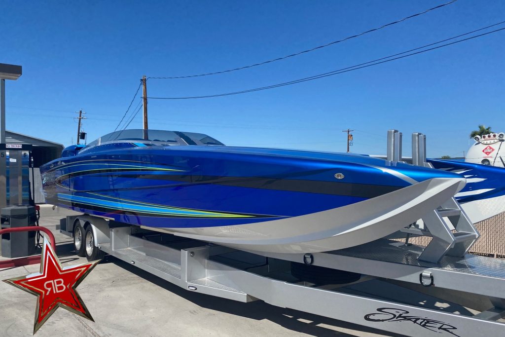 I completely redid a 2005-2017 368 Skater come with a nice tilt trailer. The motor are 604 cubic inch 1400hp with the best parts and you can detuned engines are fresh 80hr, and you can run them on whatever fuel you like by simply doing a computer tune. In addition, there’s a huge stereo system with colored lights throughout the cockpit and engine compartments.