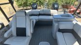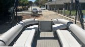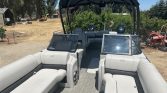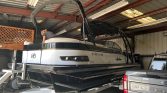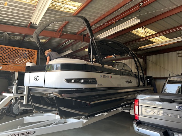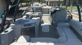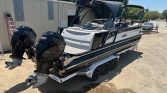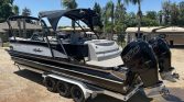 This beautifully maintained tri-pon has 72 low hours, has been garaged and covered. Twin Mercury 400 R motors with speeds 60+ mph, the ride is smooth and can easily pull your skier, your family on rafts or just chill! Equipped with a fridge and sink, as well as tons of storage. With 2 awnings, you can spend lots of time enjoying the water! The pontoons have been wrapped. The Extreme 3-axel trailer will haul…