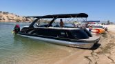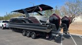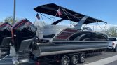 2021 Bennington 30 QXFBAX – 10′ wide with Twin Mercury Racing 450r motors (230 hrs), Just fully serviced at Barrett Marine, Stereo with sub and remote on rear deck, New Huge stainless bimini front and rear, Freshly polished and Ceramic coated, New black carbon fiber toon wrap and Vantage Gaurd rubrail, Triple axle trailer has new tires and new bunks. Boat looks, runs and rides great along with lots of room and lots storage.