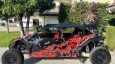 Like new only 507 miles / 45 hours. Showroom quality. Custom gator wrap, dirt specialties aluminum doors, particle separator, 52″ light bar, dual bluetooth 5150 whips, full harnesses, dual vented can am plexiglass windshield, rough country bluetooth soundbar, rock knocker mud flaps, GBC 33″ tires on metal fx rims (only 200 miles on rims/tires) spare tire mounted on linq rack, ogio gear bag. Comes with extra belt and changing tool, 5 stock rims/tires, stock doors and roof rack.