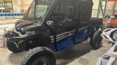 High lifter adjustable suspension/ 4″ portals, Zbros coilovers, force turbo kit (5lbs) Dyno jet tuner, engine is 100% stock, Baja and KC lights, Rockford rooftop stereo system with disco speakers, methods on 35″ dirt tires, black rhinos on rogue paddles, extra optima battery, rugged topper bed box, thumper fab bumpers with front/rear winch’s, thumper fab roof.
