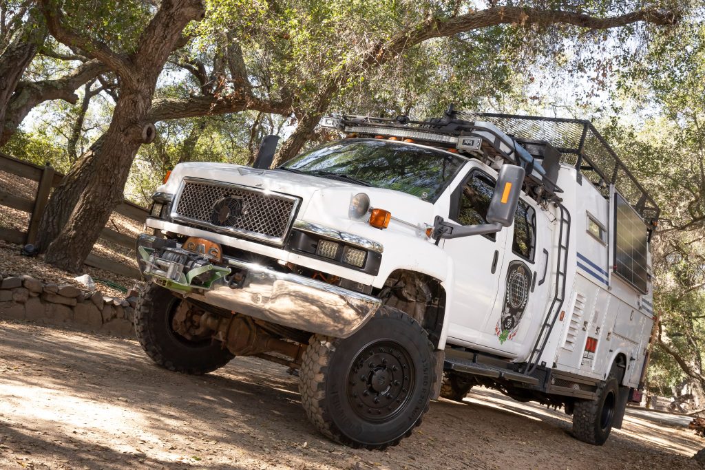 Xena laughs in the face of rugged landscapes with military-grade 42” tires, a lifted suspension, and a powerful Duramax turbo diesel engine. Whether you’re climbing rocky trails, forging snow-covered passes, or navigating washed-out desert tracks, she’s got the ground clearance and traction to handle it all.