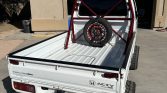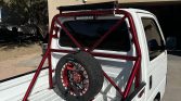tig welded bed cage with spare tire carrier powdercoated to match the 3 piece OMF wheels tires have 95% tread Baja design light bar up top